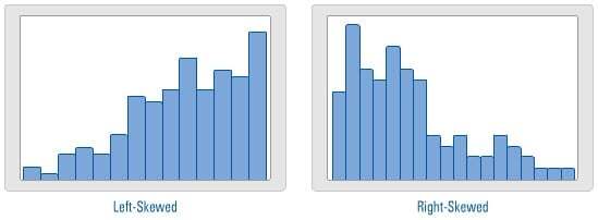 If the data are not symmetric, then the data are either left-skewed or right-skewed. If the data are skewed, then the mean may not provide a good estimate for the center of the data and represent where most of the data fall. In this case, you should consider using the median to evaluate the center of the data, rather than the mean.
