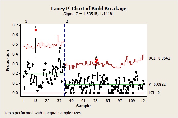 Minitab uses a continuous integration system to manage changes to the code base. So each time a developer changes code, thousands of automated tests—actually, tens of thousands—are run against the change to ensure that no problems were introduced to existing functionality. When a change causes a test to fail, we call that “build breakage,” and we refer to the frequency of build breakage as our “build quality.”