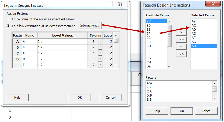 In a standard factorial (non-Taguchi) design, identifying the interactions most likely to be significant is based on alias / confounding "chains." The same alias chains apply to Taguchi designs, but are not displayed. Practitioners may not necessarily be aware that some interaction effects are confounded. However, when you use the factorial design functionality in Minitab the alias chains are clearly displayed showing the confounding pattern: