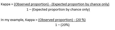 If you tick randomly to select one choice per question, you might end up having 20% correct answers, by chance only. Not bad after all, considering the minimal amount of effort involved, but in this case, a 20% agreement with the correct answers would result in a…kappa score of 0.