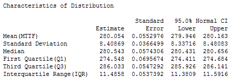 First I look at the "Characteristics of Distribution" table from the Session Window: