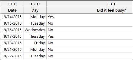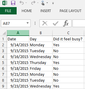 The variability in terms of days that felt extremely busy versus days that didn’t seemed unpredictable, so I decided to keep track of that information in an Excel spreadsheet, which I’ve been updating each evening: