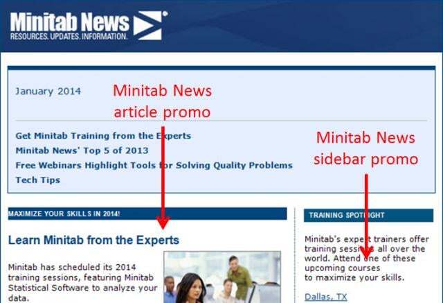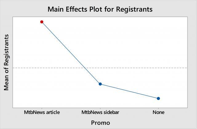 Using Minitab to conduct Tukey comparisons, we can see that registrations for webinars promoted in the newsletter sidebar space were not significantly different from webinars that weren't promoted at all.