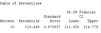 In our probability plot, the confidence interval is calculated with the parameter of interest being the percentile. Let’s look at the 10th percentile again: