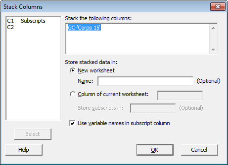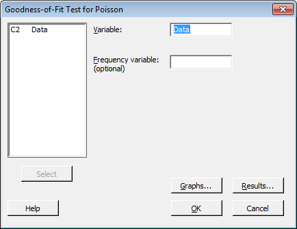 With the data stacked, I went to Stat > Basic Statistics > Goodness-of-Fit for Poisson…, filling out the dialog as shown below: