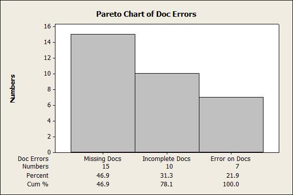 They used Minitab to create a Pareto Chart of documentation errors for the MMRB process, which helped them to quickly identify and prioritize critical documentation errors. They were able to pinpoint missing documentation as a key concern, and then made improvements to specifically address this process weakness.