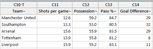 Now, using the Predict dialog in the regression menu, we can forecast and see which of the five teams competing for a Champions League spot will come out on top, based on our model.
