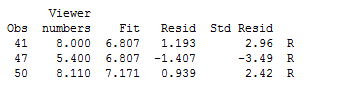 If we return to the output of the model, we can see that Minitab diagnostic results flagged some data points as unusual: