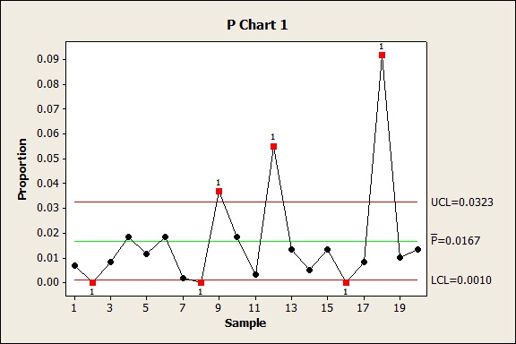 In those cases, consider using a Laney P' chart or Laney U' chart , which are specially designed to avoid false alarms in these situations.