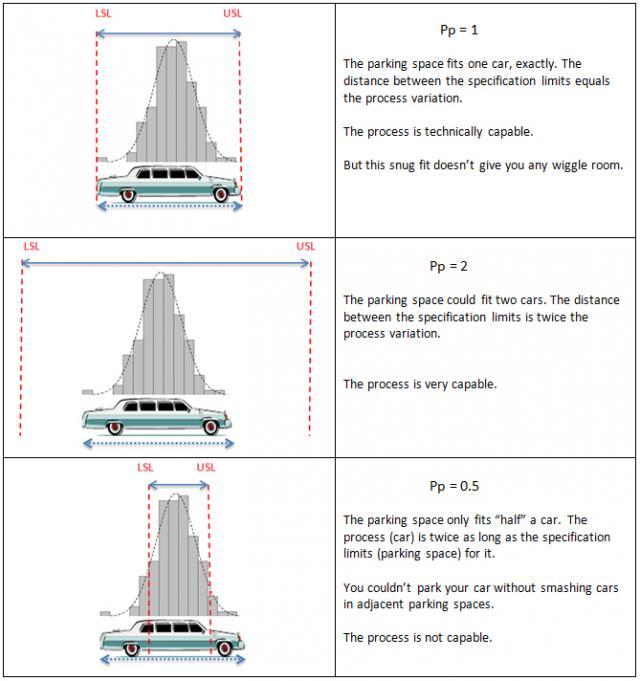 Sheriff Taylor: You got it, Barney! It’s how many times your process spread fits into your specification spread. So the smaller the car, or the larger the parking space, in relation to each other, the higher the value of Pp and the more capable the process is.