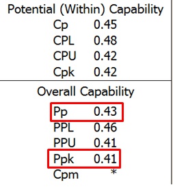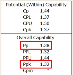 Sheriff Taylor: Looks like you've developed a good understanding of four main indices in your capability output: Cp, Cpk, Pp and Ppk.