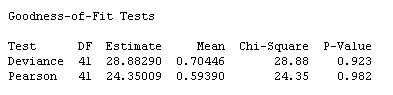 For the goodness-of-fit tests, smaller p-values (such as values less than 0.05) indicate that the model does not adequately fit the data. The p-values here are relatively large (> 0.9), so there's no statistically significant evidence of lack-of-fit. That's a good thing!