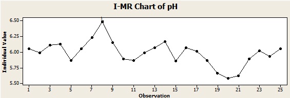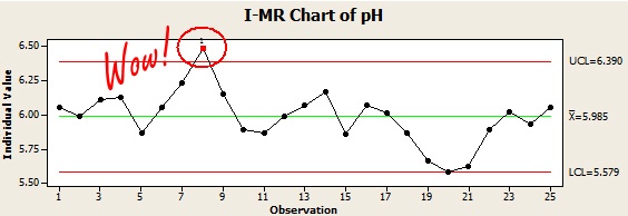 Although the chart still shows you the general pattern of variability (it’s just a time series plot now), every marked increase or decrease looks a potential suspect for a “Wow! signal.” Using this chart alone, you’ll have a tough time figuring out which specific process changes to investigate as potentially “out-of-the ordinary.”