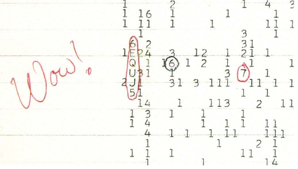 Poring over a printout of radio signals in the late 1970s, an astronomer at the Big Ear telescope at Ohio State University was flabbergasted to discover what appeared to be a big ole “How-Do-You-Do?” from space aliens, jumping out from the everyday mish-mash of earthly radio signals. He circled the signal and recorded his amazement in the margin in red: