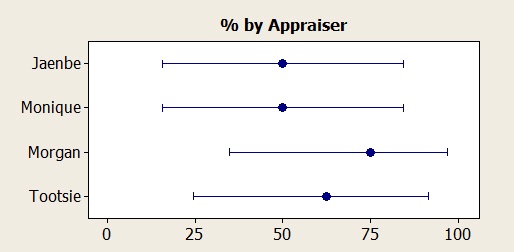 The Accuracy Report shows 95% confidence intervals for the accuracy rate of each appraiser. Here’s where the rubber meets the road, statistically speaking.