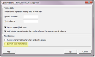 Normally, Minitab would treat them as different data points because they have different characters. But when you click Options, you can choose to have Minitab correct case mismatches for you. That’s almost as nice as having someone give you instructions about where to punch when you’re temporarily blinded in a fight with an angry biker so that you can come out the victor.