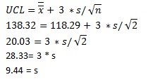 - Solve for the standard deviation, s. Using the formula for UCL, estimating