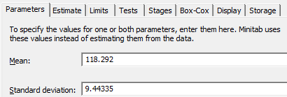 - Choose Stat > Control Charts > Variables Charts for Subgroups > Xbar. Choose Xbar Options, then click the Parameters tab. Enter the mean and standard deviation.