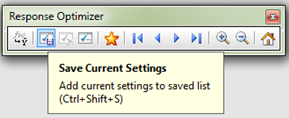While working with the Response Optimizer graph, you also could save settings, show a list of settings you’ve saved, and go back to the original settings Minitab found to be optimal using the Optimizer toolbar. If you do not see the toolbar, enable it by choosing Tools > Toolbars > Response Optimizer. Rest your mouse on each button to see a description of each tool.
