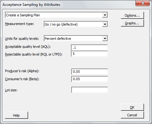 - Attribute Sampling: Determine the sample size for a categorical response that classifies each unit as Good or Bad (or, perhaps, In-spec or Out-of-spec).