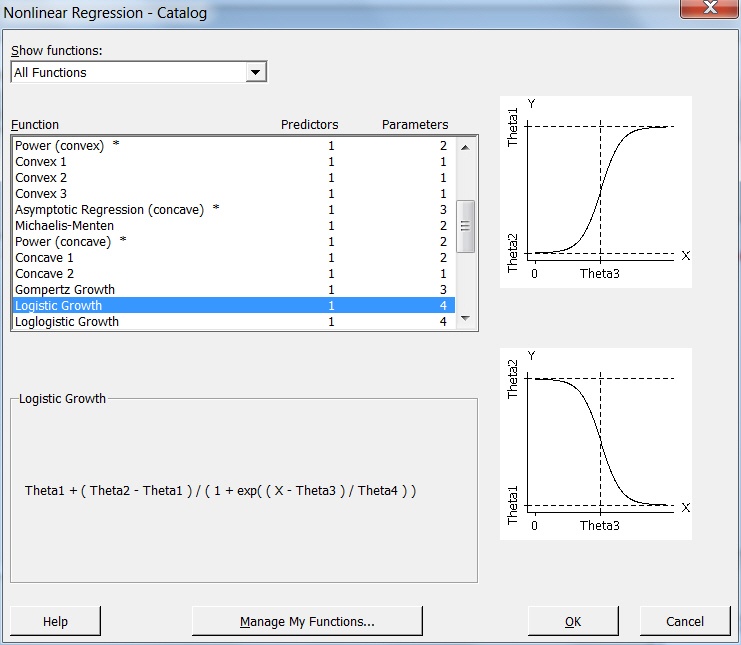 Oh wait...Minitab includes pictures to help you figure out which model might work best. And hey, what do you know? That bottom picture for Logistic Growth looks a lot like what our model should look like!