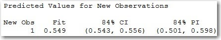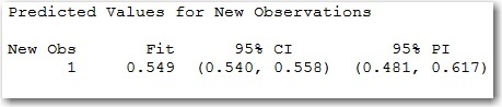 The “Fit” value tells us that the model predicts the Pirates to end the season with a winning percentage of 0.549. But remember, our model accounts for only 76.1% of the variation in the final winning percentage. So we have to look at the intervals to determine how confident we can be in that prediction.