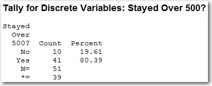 So here is my first question. How often does a team that is above 0.500 on July 20th finish with a losing record? We can use Minitab’s Tally command to find out.