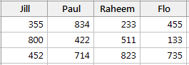 A similar tool will help you put data from separate columns into a single column for the type of analysis required. The data below show sales figures for four employees: