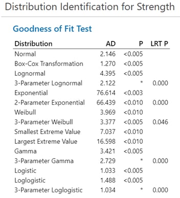 Los siguientes son los resultados que obtuve de la Identificación de distribución individual de Minitab Statistical Software.