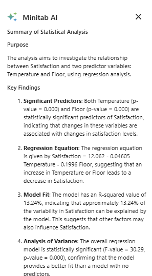Minitabの組み込みAIは、調査結果の平易な要約を生成しました。これは、以下を実証しました。