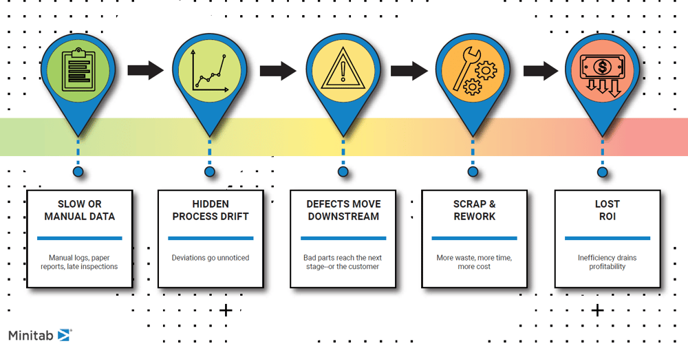 わずかな工程のずれであっても、すぐに発見されなければ大きな欠陥へと膨れ上がることがあります。そして、チームがデータを生産後にしか確認できない場合、できる最善のことは対処だけです。その間も、不良品によるコストはどんどん積み重なっていきます。