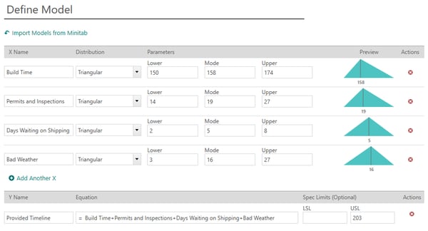 도로 건설에서 효과적인 프로젝트 관리에는 잠재적 위험 관리, 위험 식별 기법의 신중한 사용, 위험 평가 및 완화 전략이 포함됩니다. 이렇게 하면 건설 프로젝트가 일정과 예산 범위 내에서 진행될 수 있습니다. Minitab의 통계 분석 도구를 사용하면 건설 프로젝트 관리자가 위험을 파악하고 위험을 정량화하여 건설 지연을 방지하는 사전 조치를 취하는 데 도움이 될 수 있습니다. 예를 들어, 건설 프로젝트 관리자는 교통 및 환경 조건의 흐름을 분석하여 불쾌한 날씨 및 다양한 유형의 토양과 관련된 잠재적인 문제를 예측할 수 있습니다. 이를 통해 건설 프로젝트 계획을 그에 따라 조정하여 예상치 못한 지연의 위험을 최소화하고 건설 일정을 순조롭게 진행할 수 있습니다. 시뮬레이션 모델링 및 프로젝트 관리 위험 평가를 지원하는 Minitab Workspace 도구인 몬테 카를로 시뮬레이션을 사용하면 이러한 작업을 손쉽게 수행할 수 있습니다.