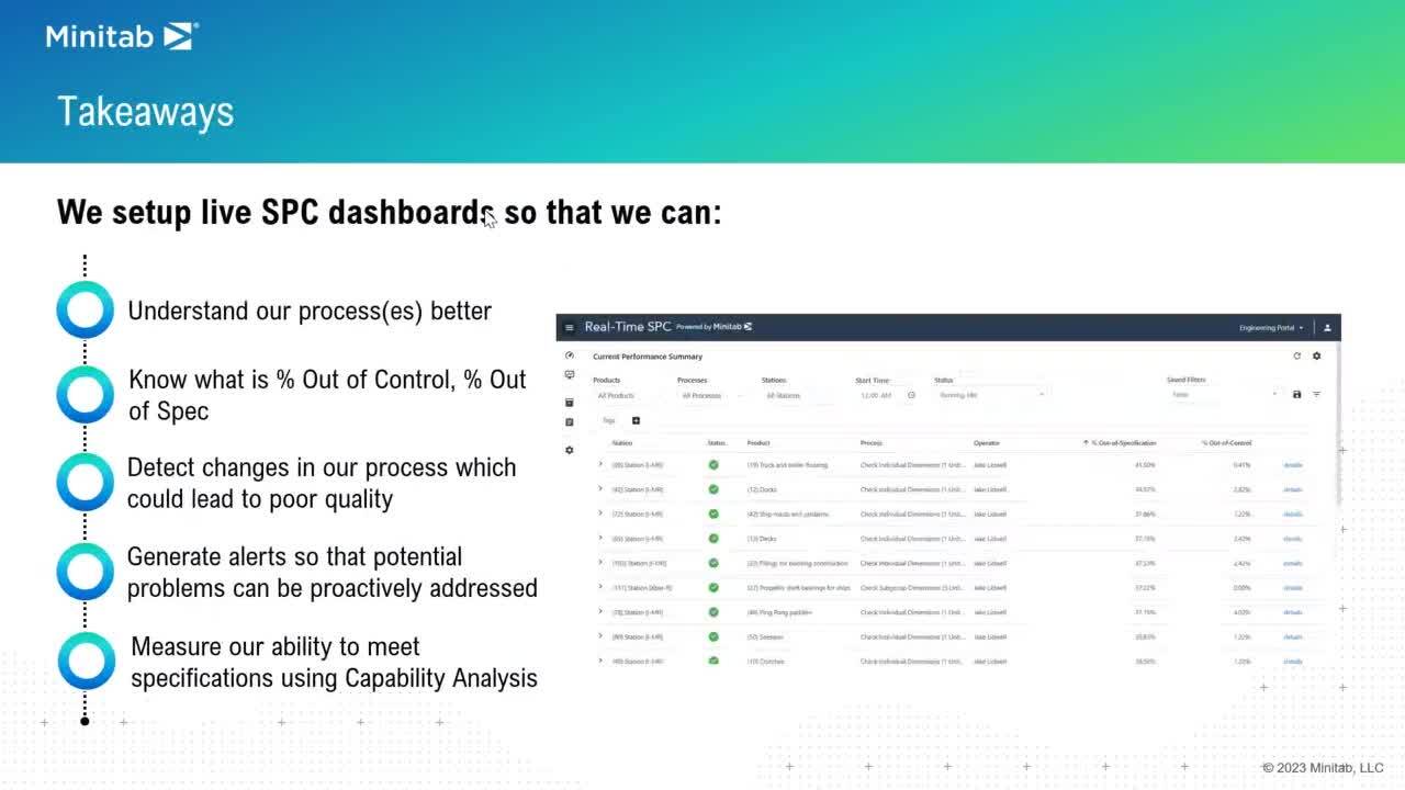 O gerenciamento de qualidade eficaz exige insights em tempo real e intervenções proativas. O Minitab Real-Time SPC facilita a análise e a melhoria de qualidade em uma solução prática, fornecendo aos profissionais de qualidade uma ferramenta abrangente para economizar tempo e dinheiro. Vamos explorar as 5 principais maneiras pelas quais o Minitab Real-Time SPC pode ajudar a melhorar a qualidade: