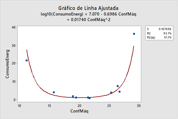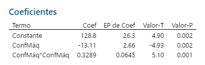 Tome muito cuidado ao interpretar um modelo de regressão que contenha esses tipos de termos. Não é possível simplesmente olhar para o efeito principal (termo linear) e entender o que está acontecendo! Infelizmente, se você estiver realizando uma análise de regressão múltipla, não será possível usar um gráfico de linha ajustada para interpretar graficamente os resultados. Este é o lugar onde o conhecimento da área é muito valioso!